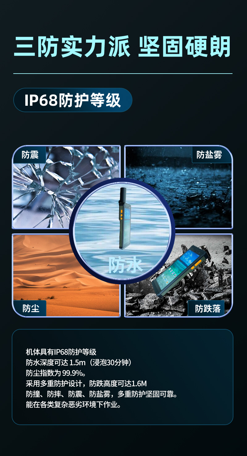 君馭北斗三號(hào)手持終端,采用IP68級(jí)防護(hù),屏幕采用康寧大猩猩材質(zhì),具備非常強(qiáng)的防刮和防水防塵防震能力,該款北斗三號(hào)手持終端支持4G全網(wǎng)通雙卡雙待,四模定位 GPS/GLONESS/Galileo/北斗定位功能,支持北斗二號(hào)/北斗三號(hào),北斗三號(hào)手持終端支持選配定制!