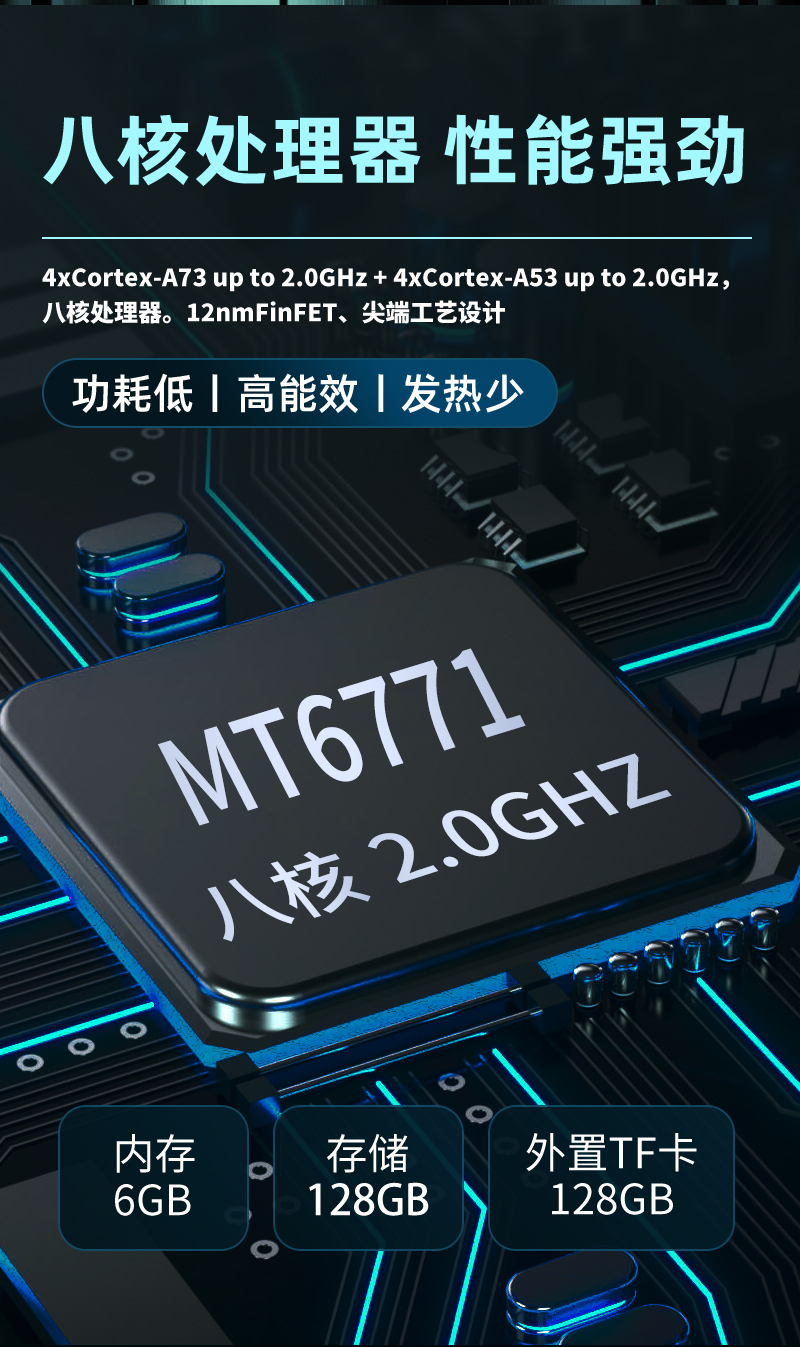MT6771四核arm A73 2.0Ghz+四核arm A53 2.0Ghz |
